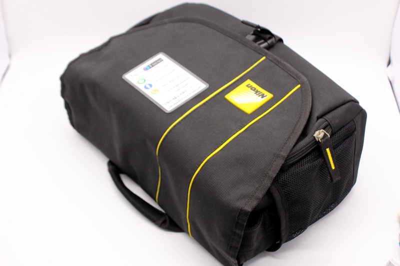 กระเป๋าแท้ Nikon มีสายสะพาย สีดำคาดเหลือง เหมาะสำหรับกล้อง DSLR ทุกรุ่น ภายในกระเป๋ามีช่องแบ่งสำหรับเก็บอุปกรณ์ได้หลากหลาย