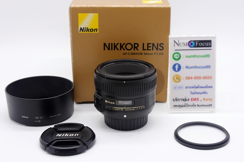 เลนส์ Nikon AF-S 50mm f1.8g สภาพสวย อดีตประกันศูนย์ ออโต้โฟกัสปกติ ตัวหนังสือสีทองยังไม่ลอก พร้อมฟิลเตอร์+Hood อุปกรณ์พร้อมกล่อง