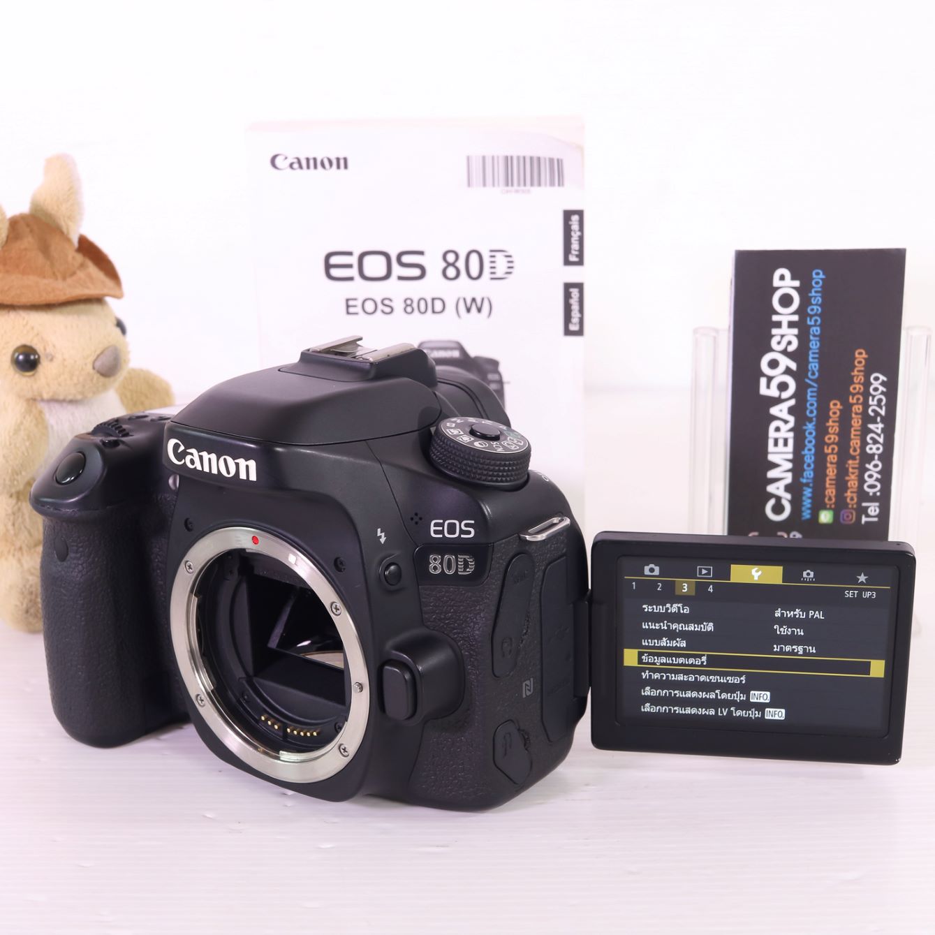 1. Body EOS 80D shutter 55k มี WiFi ในตัว หน้าจอไม่ดำ เมนูภาษาไทย ผิวสวย หน้าจอไม่ดำ ไม่มีรอยขีดข่วน ระบบทัชสกรีน ใช้งานง่าย ถ่าย VDO สวยคมชัด