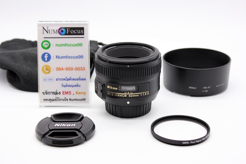 Nikon AF-S 50mm f1.8g ตัวอักษรสีทองซัดไม่ลอก สภาพสวย ขนาดและน้ำหนักที่เบาทำให้พกพาได้อย่างสะดวก พร้อมฟิลเตอร์+Hood