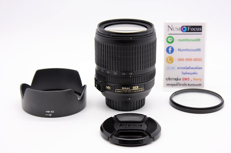 เลนส์ Nikon AF-S 18-105mm VR ยางไม่บวม ซูมไม่ไหลครับ ตัวหนังสือไม่ลอก สภาพสวย พร้อมฟิลเตอร์+Hood