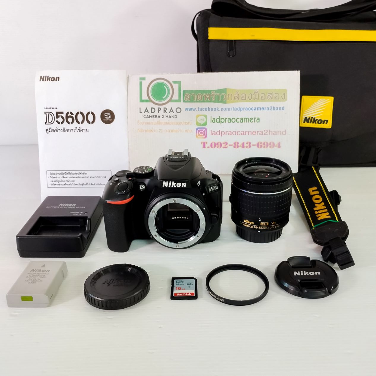 1. Body D5600 รุ่นใหม่ล่าสุด shutter 1,195 ครั้ง(เช็คแล้ว) ผิวสากๆเหมือนของใหม่ มี Wi-Fi, Bluetooth และ NFC ในตัว ระบบทัชสกรีน เมนูภาษาไทย สวยไม่มีรอยขีดข่วน ยางไม่บวม ชัตเตอร์เร็วมากๆไม่หน่วงไม่อืด