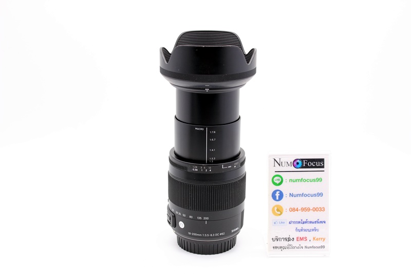 เลนส์ Sigma 18-200mm F3.5-6.3 DC OS สำหรับกล้อง CANON ประกันหมดแล้ว ยางไม่บวม-ซูมไม่ไหล ใช้งานปกติ พร้อม+Hood