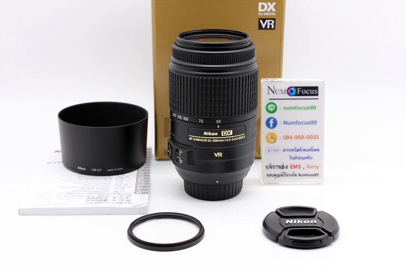 เลนส์เทเลซูม Nikon AF-S 55-300mm f/4.5-5.6G ED VR อดีตประกันศูนย์ สภาพสวยเหมือนใหม่ มีกันสั่น ไม่มีรา-ฝ้า-ฝุ่น อุปกรณ์พร้อมกล่อง