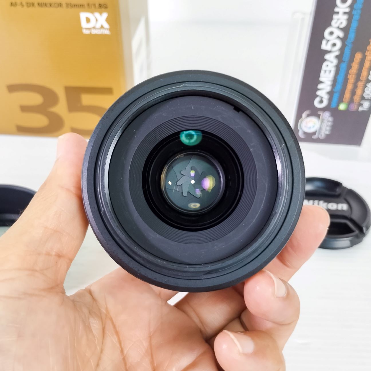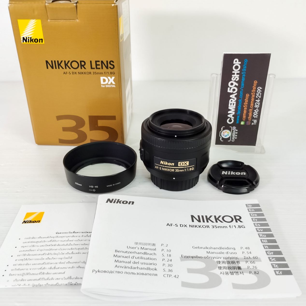 1. Lens Nikon AF-S DX 35mm f/1.8G (ถ่ายหน้าชัดหลังละลาย ไม่ต้องถอยไกล) เหมือนใหม่ ไม่มีตำหนิ ผิวสากๆ ไม่มีตำหนิ ใช้งานได้ปกติ ออโต้โฟกัส ไม่เป็นฝ้า ไม่มีรา และตัวหนังสือสีทองคมชัดไม่ลอก ระบบออโต้โฟกัสทำงานปกติ