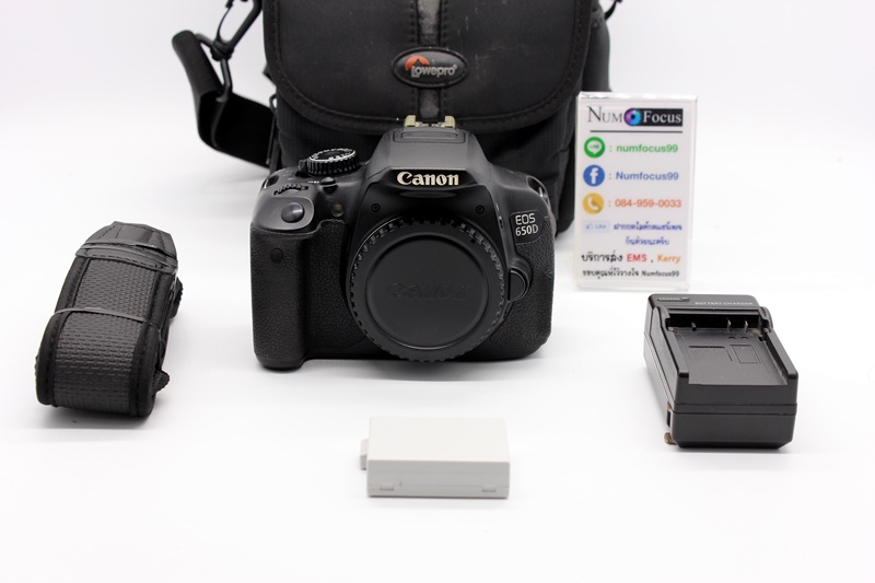 บอดี้ Canon 650D ขอบจอดำนิดหน่อย ยางไม่บวม ใช้งานปกติ เมนูภาษาไทย ประกันหมดแล้วครับ อุปกรณ์พร้อมกระเป๋า