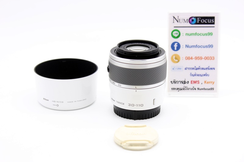 เลนส์ Nikon 1NIKKOR 30-110mm VR สีขาว สภาพสวย ประกันหมดแล้ว ใช้งานปกติครับ พร้อม+Hood